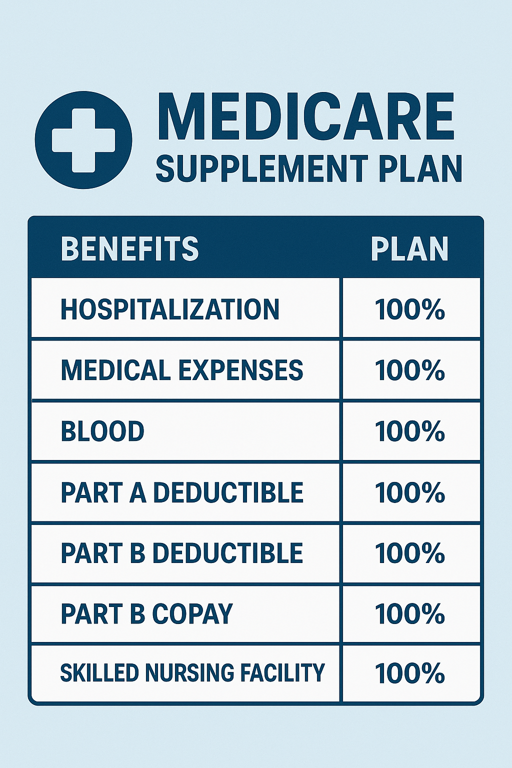 Medicare Supplement Plans are described by letters and are standardized. That means that each plan’s benefits are the same for a plan, regardless of which company you buy it from.